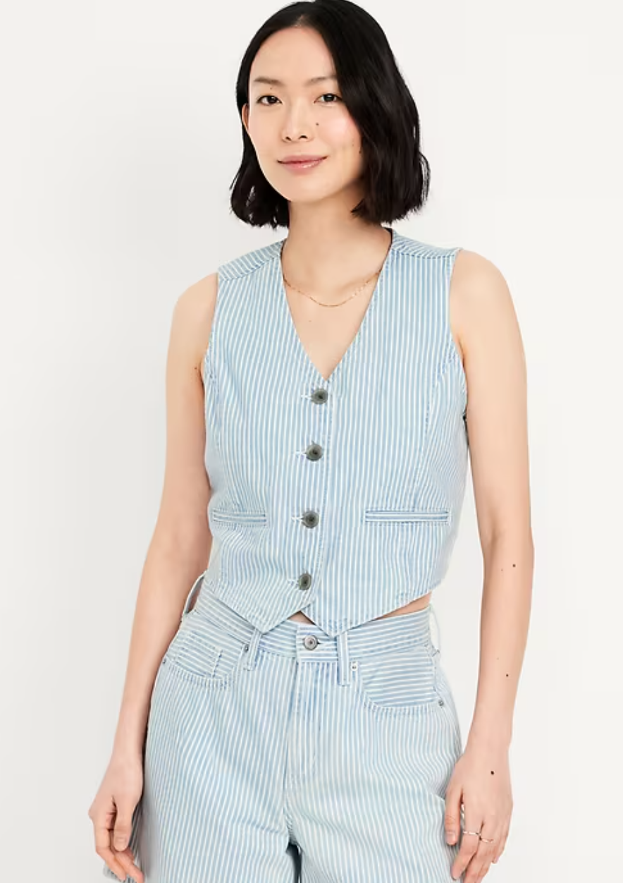 Button-Front Jean Vest