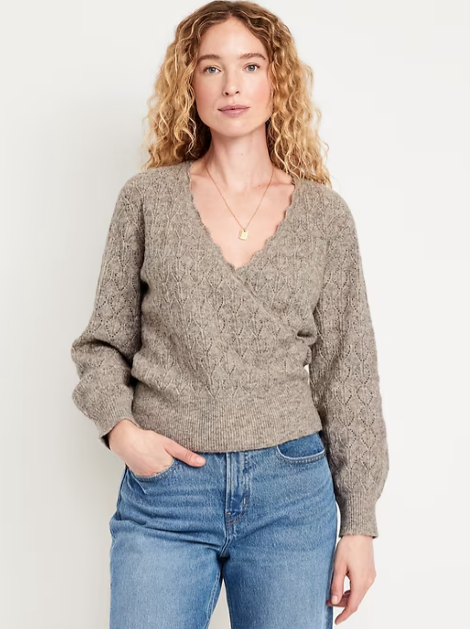 How to refresh it: Roll the sweater sleeves, half-tuck it, or add a collared shirt underneath. Small tweaks change the entire proportion.