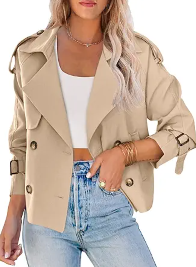 Oversized blazers are cute, but they can easily swallow a smaller frame. Cropped jackets that hit at the waist help define your shape and make your legs look longer.