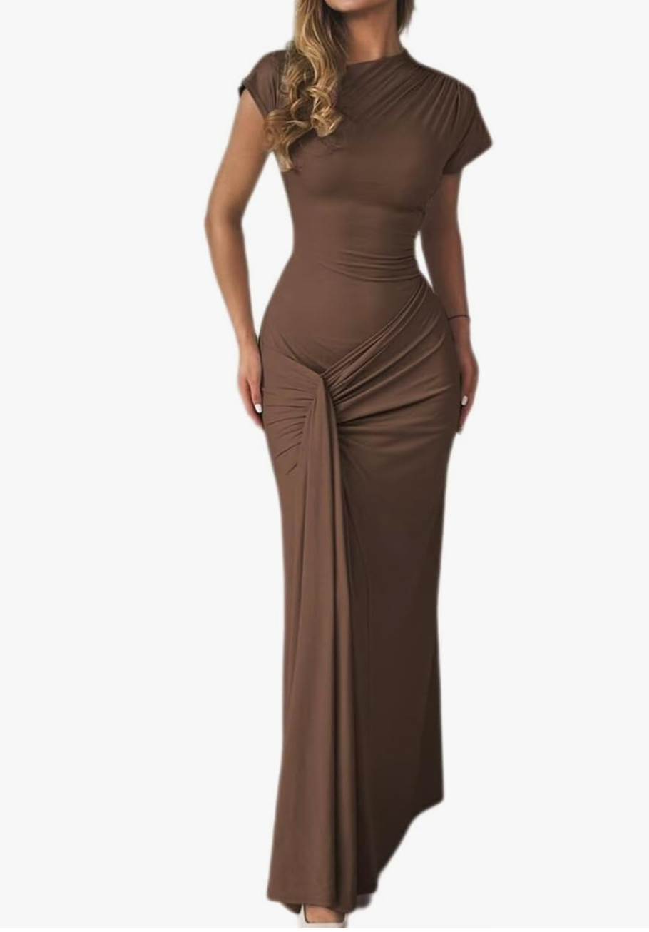 Ruched Short Sleeve Long Dress