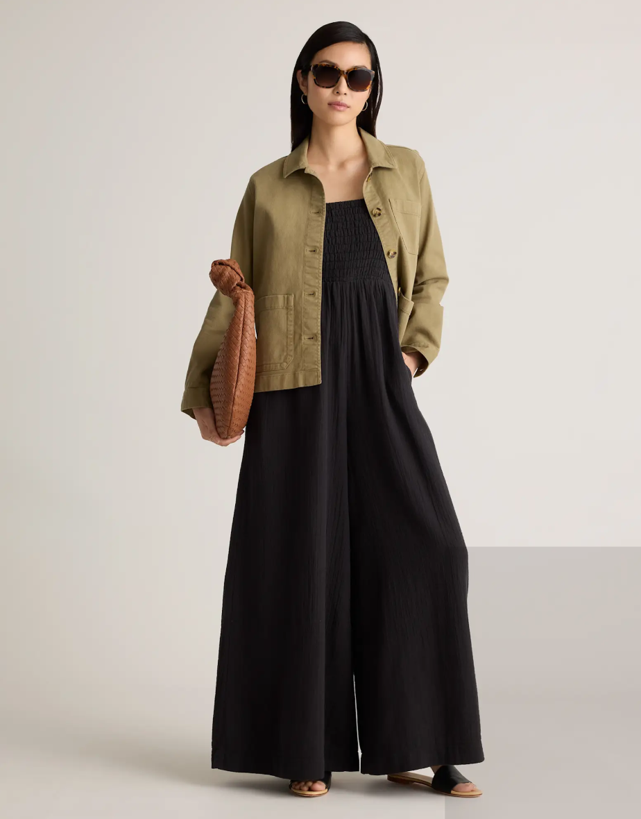 100% Organic Cotton Gauze Smocked Wide Leg Jumpsuit