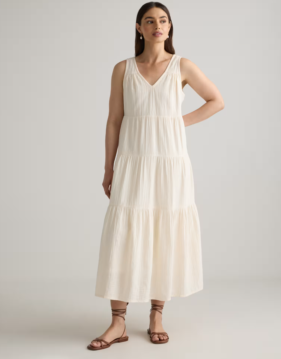 100% Organic Cotton Gauze Tiered Maxi Dress