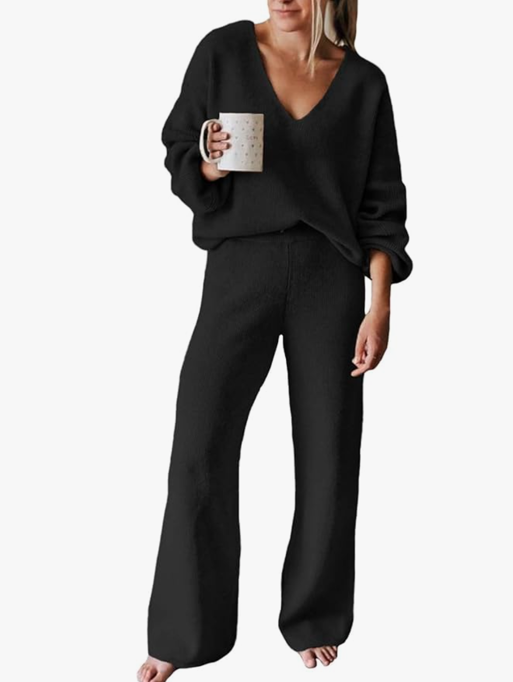 Matching ribbed sets, soft joggers, quarter zips — the kind of pieces that make you feel put together even when you’re on the couch.