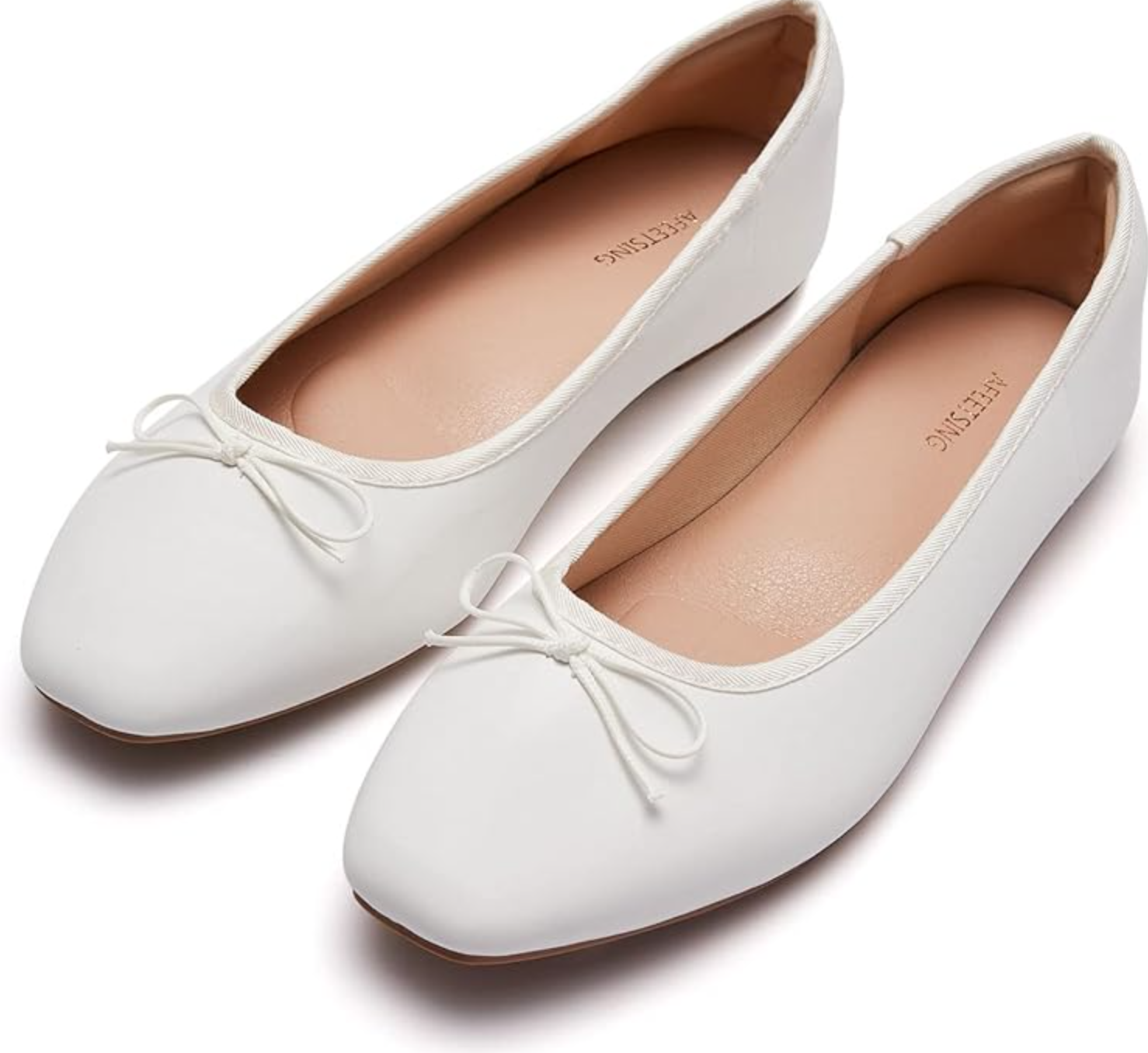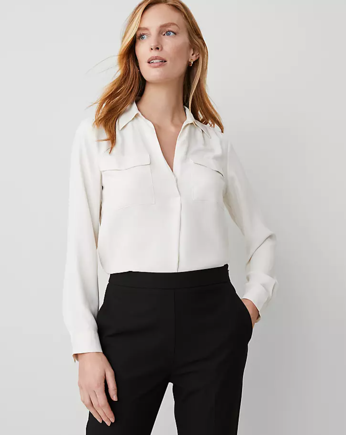3. Flowy Button-Up + Straight-Leg Pants + Ballet Flats