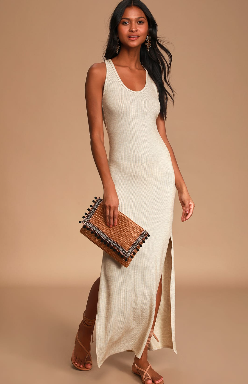 Relaxed but Not Least Beige Ribbed Sleeveless Maxi Dress