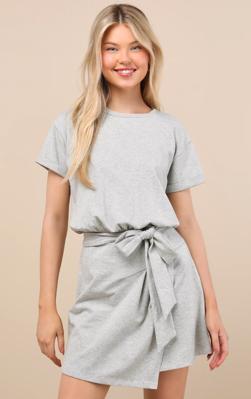 Feelin' Confident Heather Grey Cutout Mini Shirt Dress