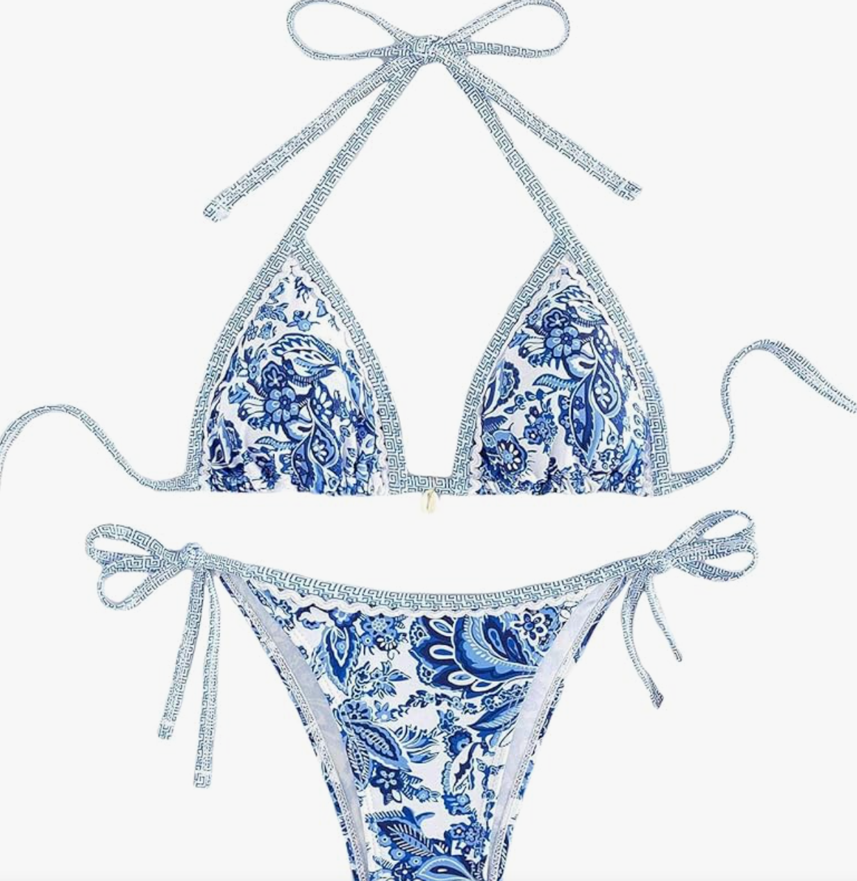 Why it works: A supportive top paired with a high-waisted bottom gives you flexibility in sizing while offering subtle coverage where you want it. This option is great if you prefer a two-piece without feeling exposed.