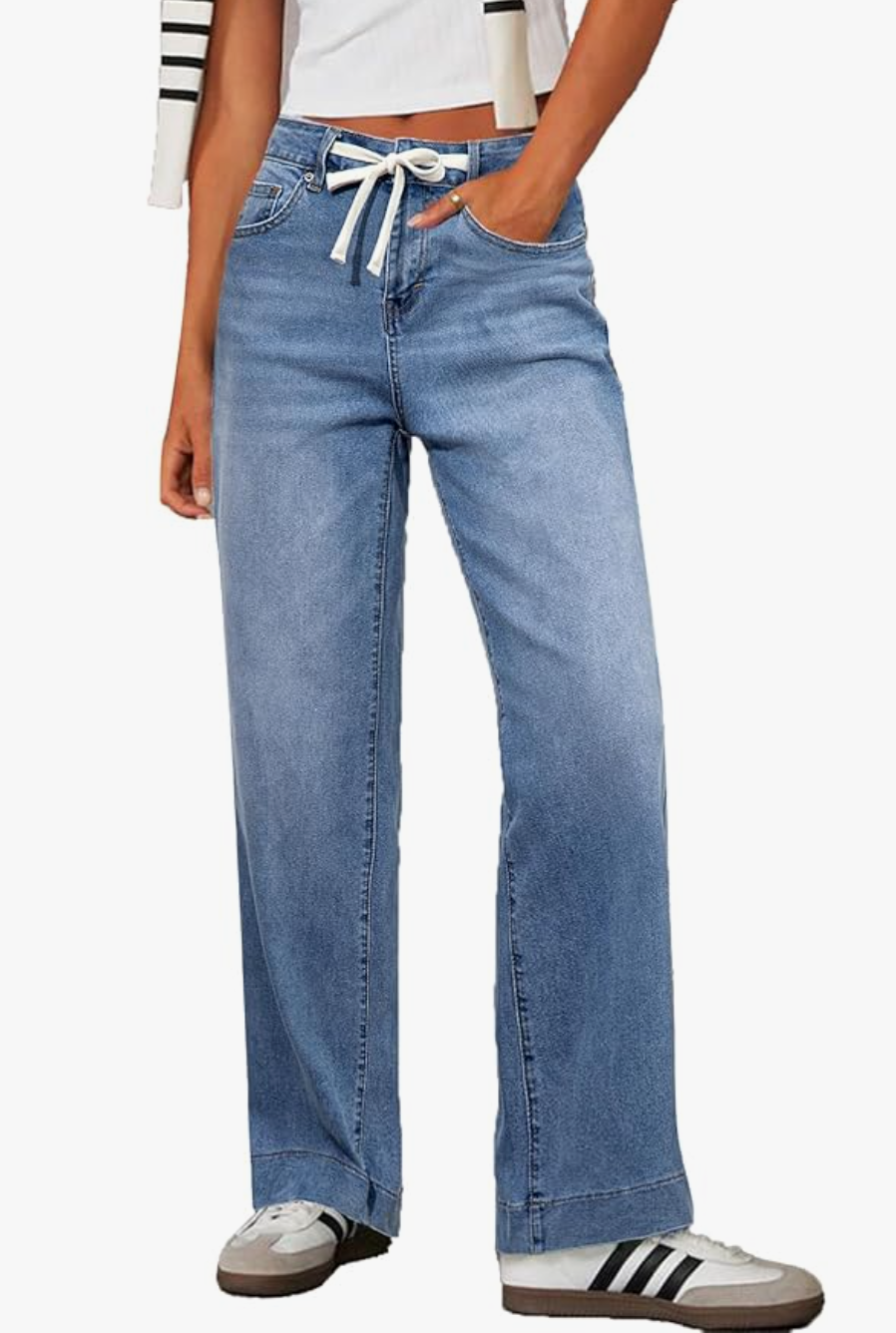 Stretchy Straight Leg Baggy Drawstring Jeans