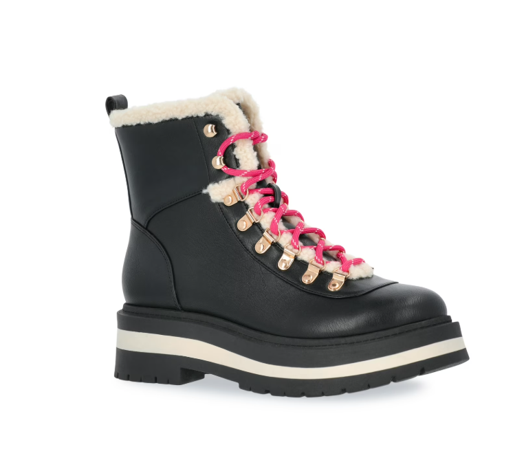 Free Assembly Women's Lace-Up Faux Shearling Booties