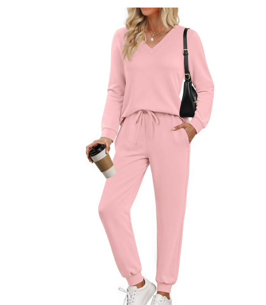 Lounge Sets V Neck Tops Long Pants