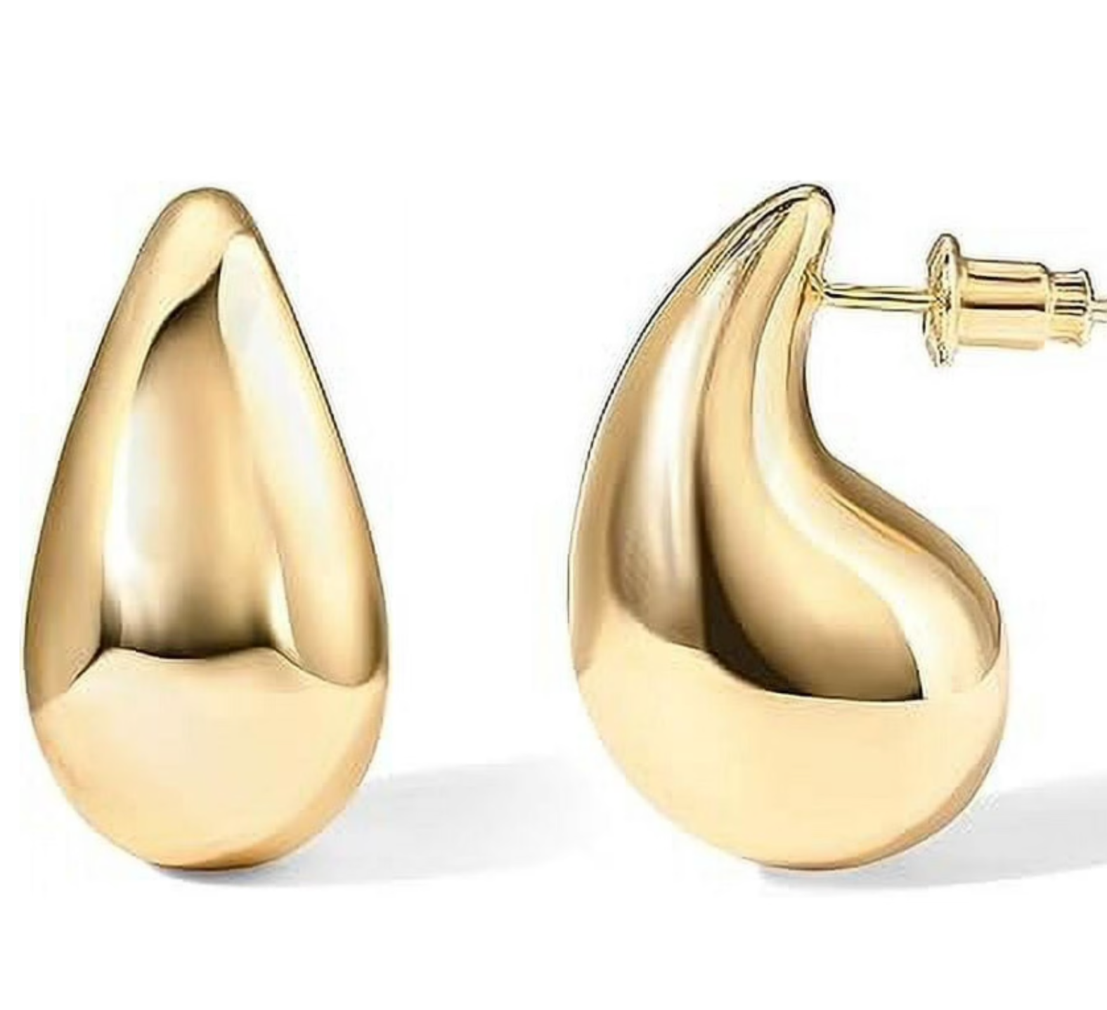 14K Gold Plated 925 Sterling Silver Post Teardrop Chunky Hoop Earrings