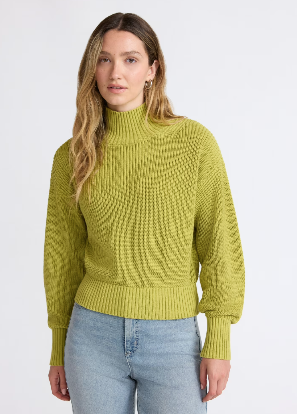 Cotton Boxy Ribbed Turtleneck Sweater