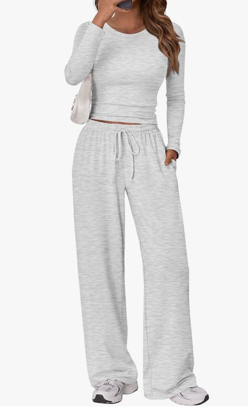 Long Sleeve Slightly Crop Top Wide Leg Pants