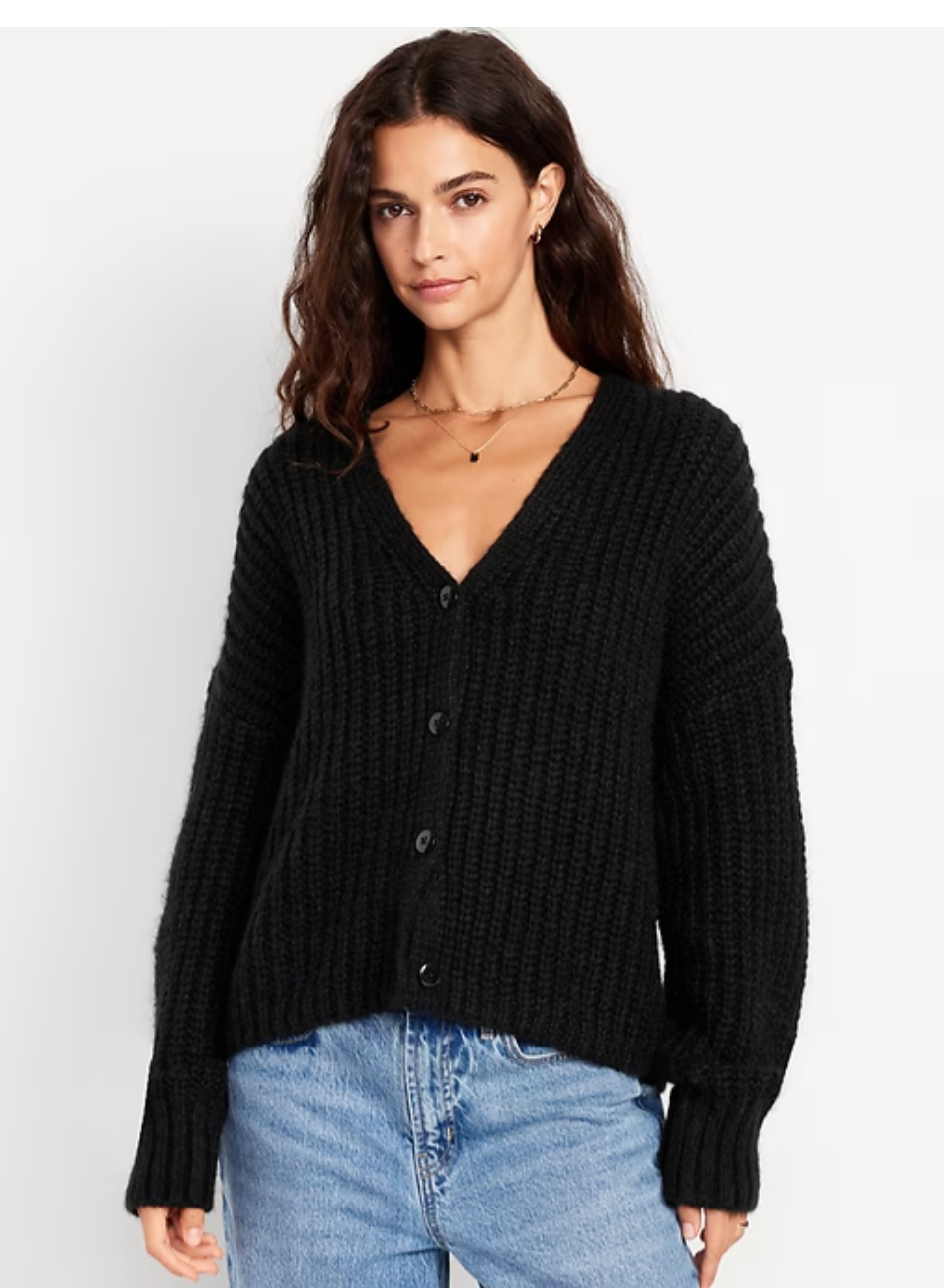 Wool-Blend Shaker-Stitch Cardigan Sweater