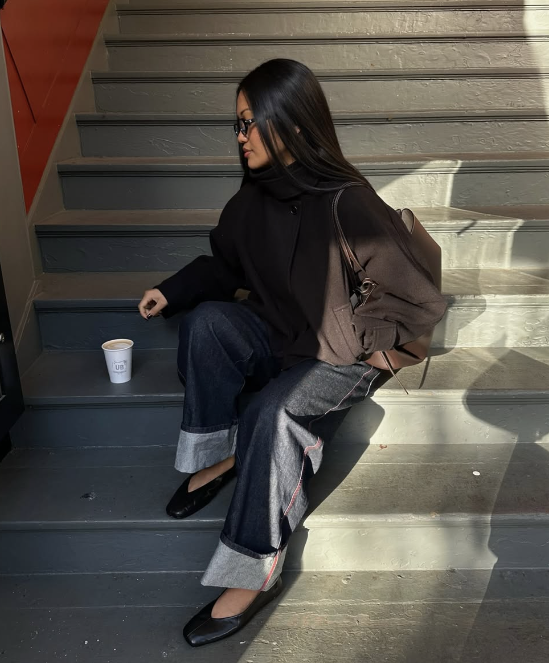Add a polished knit or a button-down that looks finished without feeling stiff, something that doesn’t wrinkle the second you sit down. The outer layer should be sharp enough to pull the whole look together, whether that’s a structured jacket or a tailored coat that instantly makes the outfit feel intentional.