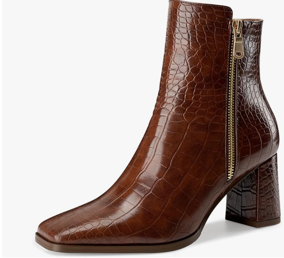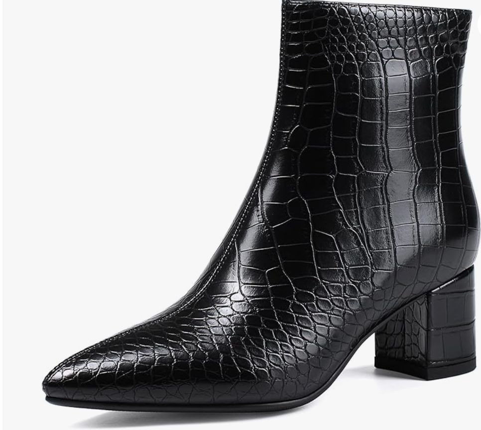 If full snakeskin boots feel intimidating, start with a croc-embossed loafer or patent slingback. They’ll make your outfit look twice as expensive — without actually being designer.