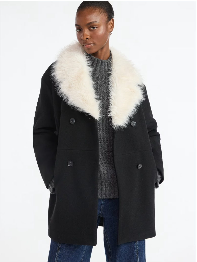 Oversized Faux Fur Collar Coat
